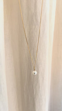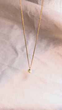 Halsband med en vit odlad pärla fäst med tråd i 18k guld. Kedjan är en antik pansarkedja i 18k guld.